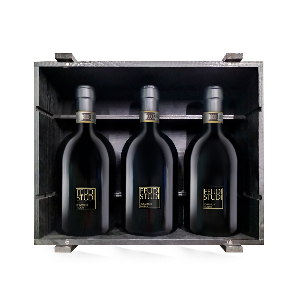 Feudi di San Gregorio 3 Flaschen Feudi Studi Rosamilia Taurasi Vertikale in der Holzkiste 2014-2016-2018