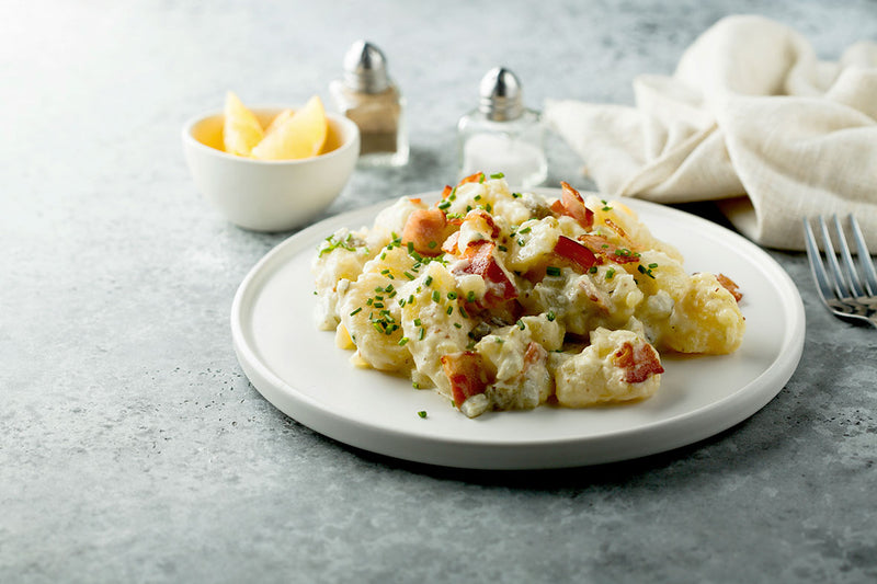 Zugegeben, es ist jetzt nicht so die leichteste Salatvariante, die es gibt. Kartoffelsalat mit Mayonnaise. Zu den ohnehin schon sättigenden Kartoffeln kommt hier noch eine cremige Mayonnaise! Denn auch der Saucen-Klassiker der kalten Küche kommt mit frischem Eigelb und Öl eher gehaltvoll daher. Genau dadurch wird diese Variante aber auch so lecker, wenn sich die geschmeidige Sauce an den Gaumen schmiegt. Im Weinglas braucht es da auch etwas Schmeichelndes, das ein gewisses Gewicht mitbringt, um nicht unterzugehen.Genau das bringt ein leicht im Holz ausgebauter Chardonnay mit. Die sind meistens nämlich ebenfalls cremig und behaupten sich mit üppigem Körper bei der reichhaltigen Sauce. Allerdings: Einen Chardonnay aus neuem Barrique würden wir nur bedingt empfehlen, denn die vanilligen Aromen könnten dann doch etwas zu wuchtig sein. Ein weiterer idealer Partner zu solch fettigen Saucen ist der Grauburgunder. Der wartet mit fruchtiger Fülle auf, die es spielend mit der Mayonnaise aufnehmen kann. Das gilt für einen Pfälzer Grauburgunder ebenso wie für einen italienischen Pinot Grigio oder einen Pinot Gris aus dem Elsass. Schmelz und feine Fruchtnoten bringen auch kräftigere Weißburgunder mit, etwa aus der Pfalz und Baden.
